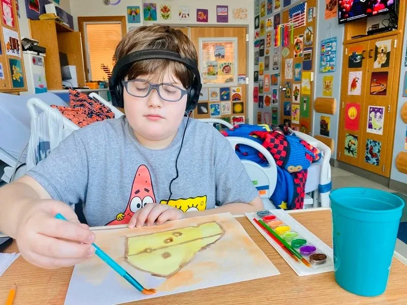 On that floor, Emmett is receiving group sessions, occupational therapy, and music, dance, and speech therapy — which are helpful for now.